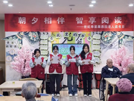 活动尾声,4名志愿者为老人们带来了一场饱含深情的朗诵。他们精神饱满、声情并茂,用清晰有力的声音诠释文字之美。老人们安静聆听,目光专注,不少人随着节奏轻轻点头,沉浸在这份美好的朗读体验中。