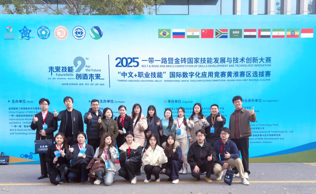 10月26日至28日,旅游商贸学院师生赴山东滨州职业学院,参加2025一带一路暨金砖国家技能发展与技术创新大赛——中文+职业技能国际数字化应用黄淮赛区选拔赛,并取得优异成绩。
