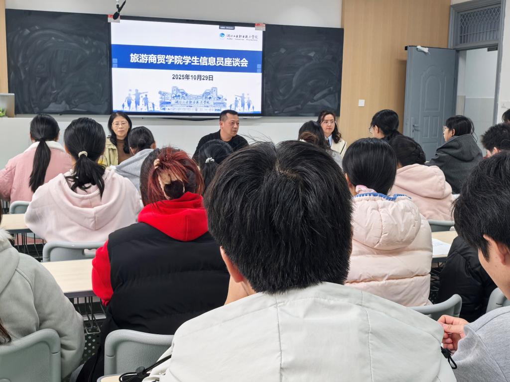 为持续提升教育教学质量,完善教学管理与监控机制,促进师生有效沟通,旅游商贸学院于2025年10月29日下午组织召开了2025-2026学年第一学期师生信息员座谈会。会议分设学生座谈会与教师座谈会两个专场,分别在3305、3307和3505教室同步举行。学校督导、学院全体教师及学生代表共同参会。