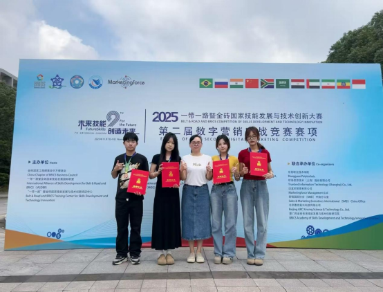 2025年11月8日,2025年一带一路暨金砖国家技能发展与技术创新大赛之第二届数字营销实战竞赛全国总决赛在广东东莞职业技术学院圆满落幕。经过激烈角逐,我校电子商务专业派出的两支代表队凭借扎实的专业功底、出色的创新思维与卓越的团队协作能力,在全国总决赛中脱颖而出,分获银奖与铜奖,学校同时荣获“优秀组织奖”,充分展现了我校在应用型人才培养和高素质技术技能人才培育方面的显著成效。