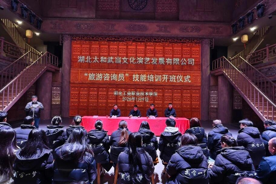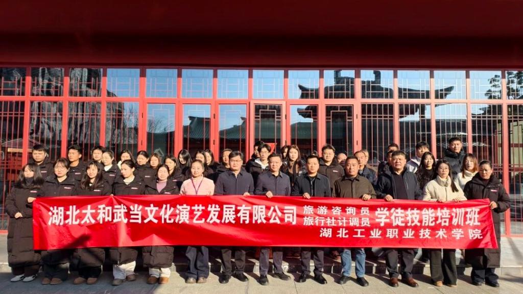 1月9日上午,武当一梦景区内气氛庄重而热烈,“旅游咨询员”技能培训开班仪式在此隆重举行。本次培训由武当山特区文旅、人社部门与湖北工业职业技术学院联合举办,我校旅游商贸学院作为核心承办单位,深度参与项目策划、课程体系设计与教学实施,凸显了学院主动服务地方文旅产业、深化产教融合的担当作为。