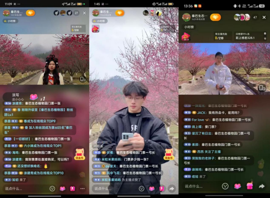本次实践活动自1月21日启动,至2月25日圆满收官。团队累计开展专题直播20场,场均时长2小时,实现场均曝光人数1.8万人次、场均点赞1.4万次,以高频次、专业化直播为景区注入强劲流量活力。实践中,团队聚焦秦巴植物园花卉景观、植物科普等核心内容,打造固定直播栏目,通过短视频账号联动引流、多平台同步宣推,构建起内容专业化、运营常态化、推广多元化的宣传体系,有效带动景区苗木、门票咨询量显著提升,切实以直播电商助力兴旅惠民。