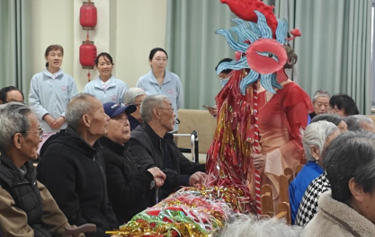 表演结束后,暖心互动正式开启,志愿者们手持凤凰灯走入老人中间,让凤凰灯轻轻触碰老人的手与肩膀,老人们轻抚凤凰灯道具,纷纷感慨时光变迁,回忆起儿时赶庙会、看灯舞的美好场景。志愿者们顺势与老人们促膝长谈,用十堰本土方言拉家常、听故事,耐心倾听老人的心声,一句句问候、一声声交谈,让养老中心里暖意融融。