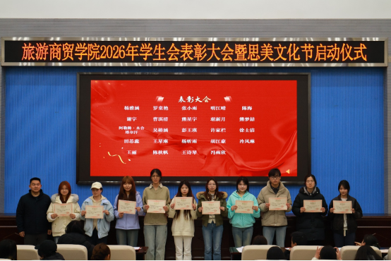 3月18日晚,旅游商贸学院2025-2026学年第一学期学生会总结表彰大会暨思美文化节启动仪式在学术报告厅举行。学院领导班子、辅导员及学生代表齐聚一堂,共同回顾奋进足迹,开启以文化人、以修立身的新篇章。